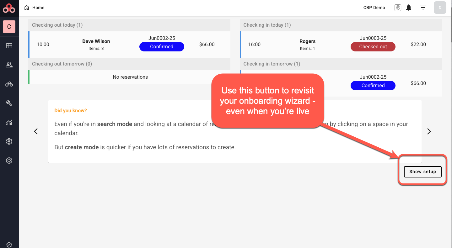 Even when you're live you can still access your onboarding wizard if you want to refer back to anything: