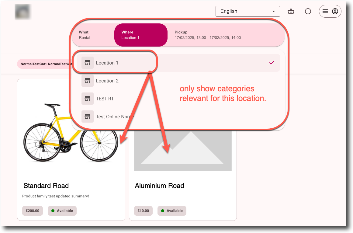 Now when you access your online booking the location selector will determine which categories are available based on your Home Locations. When the user changes the location drop down relevant categories will change dynamically.